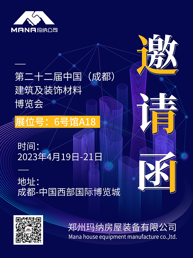 第二十二屆中國(成都)建筑及裝飾材料博覽會(簡稱:成都建博會/CCBD),將于2023年4月19—21日在中國西部國際博覽城召開,展會規模15萬㎡展覽面積,瑪納公司受邀參加,誠摯邀請您蒞臨瑪納公司展位(展位號:6號館A18),期待您的到來!