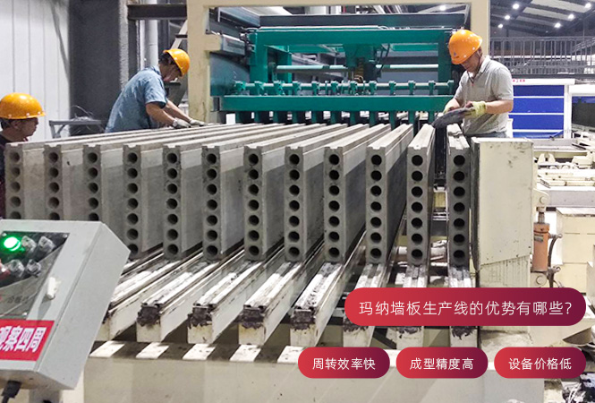 該生產線具有“成型精度高,周轉效率快”等優勢。設備具有高度自動化、生產效率高、可靠性好和設備價格低、終端產品成本低、生產的墻板適應市場需要的特點。