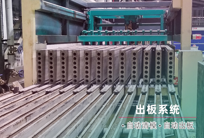 3) 推板清模機(jī):一次性將立模機(jī)內(nèi)的12塊墻板推出,并能自動(dòng)將立模隔板清理干凈。
