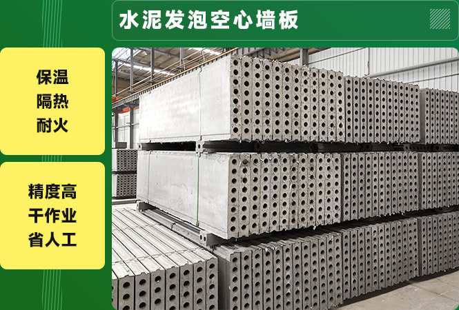 水泥發泡空心板是以水泥、石灰、硅砂等為主要原料,經過高壓蒸汽養護而成的多氣孔混凝土成型板材。水泥發泡空心板為綠色環保材料,無有害氣體逸出。其加工制作充分利用了各種工業廢渣或尾砂,符合建筑業節能和可持續發展的理念。在現代施工中,使用水泥發泡空心墻板已成為一種趨勢。