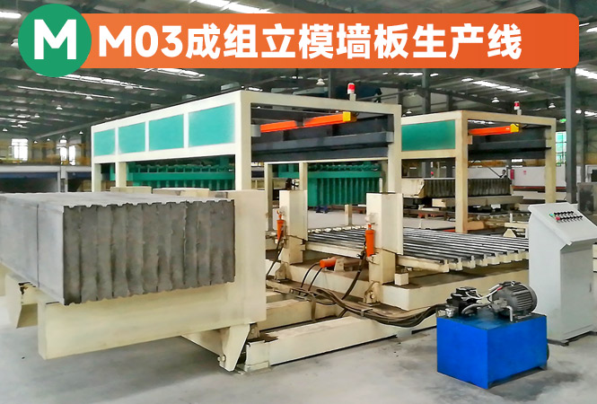 M03型機械化墻板生產線是目前市場上技術較為成熟的用成組立模機械裝備。生產線整體采用瑪納公司自主創新研制開發的新型成組立模技術,增加了模車主動行走、集中工位開合、機械抽芯/穿芯、集中式養護等新技術,大大提高了生產效率,提升產能,節省人工。生產出的墻板性能指標明顯優于現行標準。