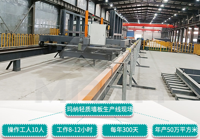 菱鎂墻板生產(chǎn)工藝落后,生產(chǎn)方式簡單, 不能滿足迅速發(fā)展的住房建設(shè)要求,需新的更加科學(xué)好的生產(chǎn)方式代替,針對現(xiàn)有技術(shù)中存下的缺陷和不足,用瑪納公司輕質(zhì)墻體板設(shè)備墻板機(jī)生產(chǎn)菱鎂墻板, 機(jī)械化程度高,科技含量大,能夠大大減輕勞動強(qiáng)度,提高勞動生產(chǎn)率,產(chǎn)品質(zhì)量更加可靠,很好地實(shí)現(xiàn)了輕質(zhì)墻體板設(shè)備墻板機(jī)與菱鎂墻板制作工藝的優(yōu)勢互補(bǔ)。