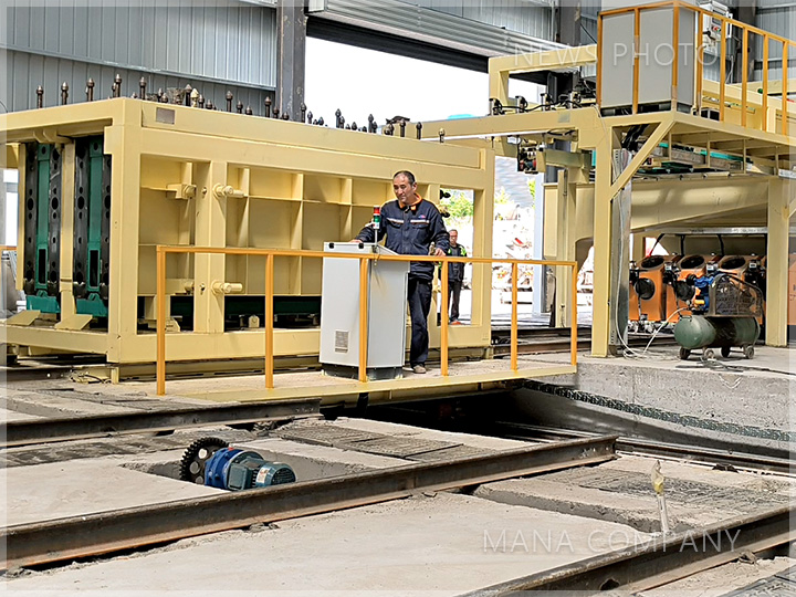 本生產(chǎn)線是一條采用“子母模技術(shù)全被動運行”的自動化生產(chǎn)線,通用母模運行采用集中動力平臺區(qū)塊自動化運行模塊控制、集中開合模機采用功能模塊自動化控制,極大地節(jié)約了設(shè)備成本,大大降低了能源消耗,以產(chǎn)能42萬平方米/年的雙向孔板墻板生產(chǎn)線為例,裝機功率可節(jié)省約為60%;同時也省去了大量的電路連接和油路連接,大大簡化了安裝,便于操作和維修;更重要的是消除了傳統(tǒng)動力式成組立模進入高溫養(yǎng)護環(huán)境發(fā)生電器及液壓故障的安全隱患,實現(xiàn)安全運行和安全生產(chǎn)。