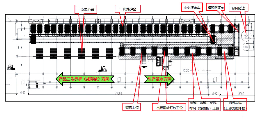 (一) 泡沫混凝土輕質隔墻板生產線總體布局