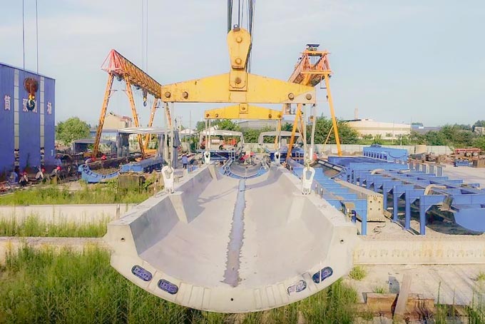 1)混塔管片二分體立式生產工藝具有單塊構件體積大、構件尺寸偏差大和構件底部容易出現因混凝土漏振而疏松的質量問題,同時具有生產空間受限、生產效率低和運輸不便等缺點。