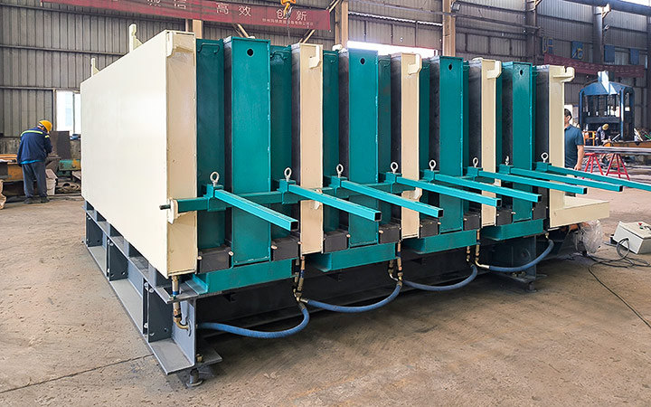 采用液壓系統和磁盒固定等快速方式,開合模時間也有縮短。立模成型總時間相比平?s短4~6h,立模成型構件的生產周轉次數提高約20%~25%。立模成型工藝實現自動高效蒸養,熱量損耗降低,水泥水化熱量被充分利用,蒸養溫度降低10℃以上,時間也縮短1~2h,節能效果明顯。