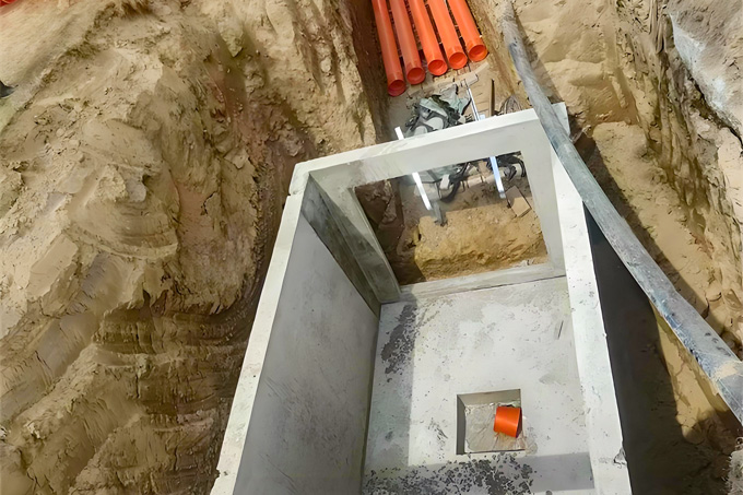 工藝流程:井預制 - 放樣 - 基坑開挖 -墊層施工 - 運輸 - 吊裝 -防水處理