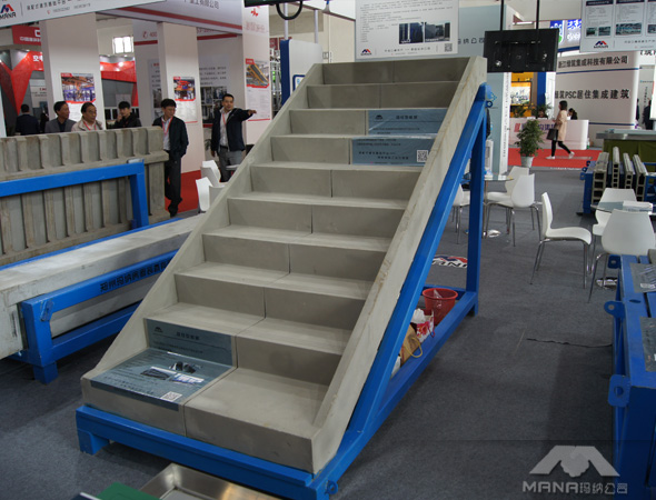 建筑業“十二五”規劃明確提出積極推動建筑工業化,預制樓梯省工、方便,可縮短施工的工期。瑪納公司推出的“預制樓梯生產線”主要生產多種規格工業化預制樓梯部品,如剪刀樓梯、雙跑樓梯(可含轉向平臺)、旋轉樓梯、具有特殊功能的樓梯(如具有防滑、透水及具有融冰雪功能的樓梯等特殊預制樓梯)。該生產線可實現多種規格尺寸的預制樓梯共線生產,更便于標準化,更易于批量化生產,完全符合國家建筑業“十二五”規劃的標準。