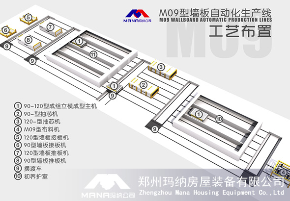 1.輕質墻板成套生產設備-M09輕質墻板自動化生產線簡介