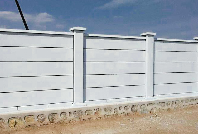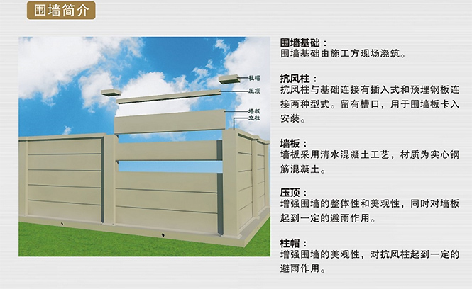 水泥圍墻條板寬0.5m-0.6m,長3m-4m,厚60mm-150mm,其他規格也可定制。